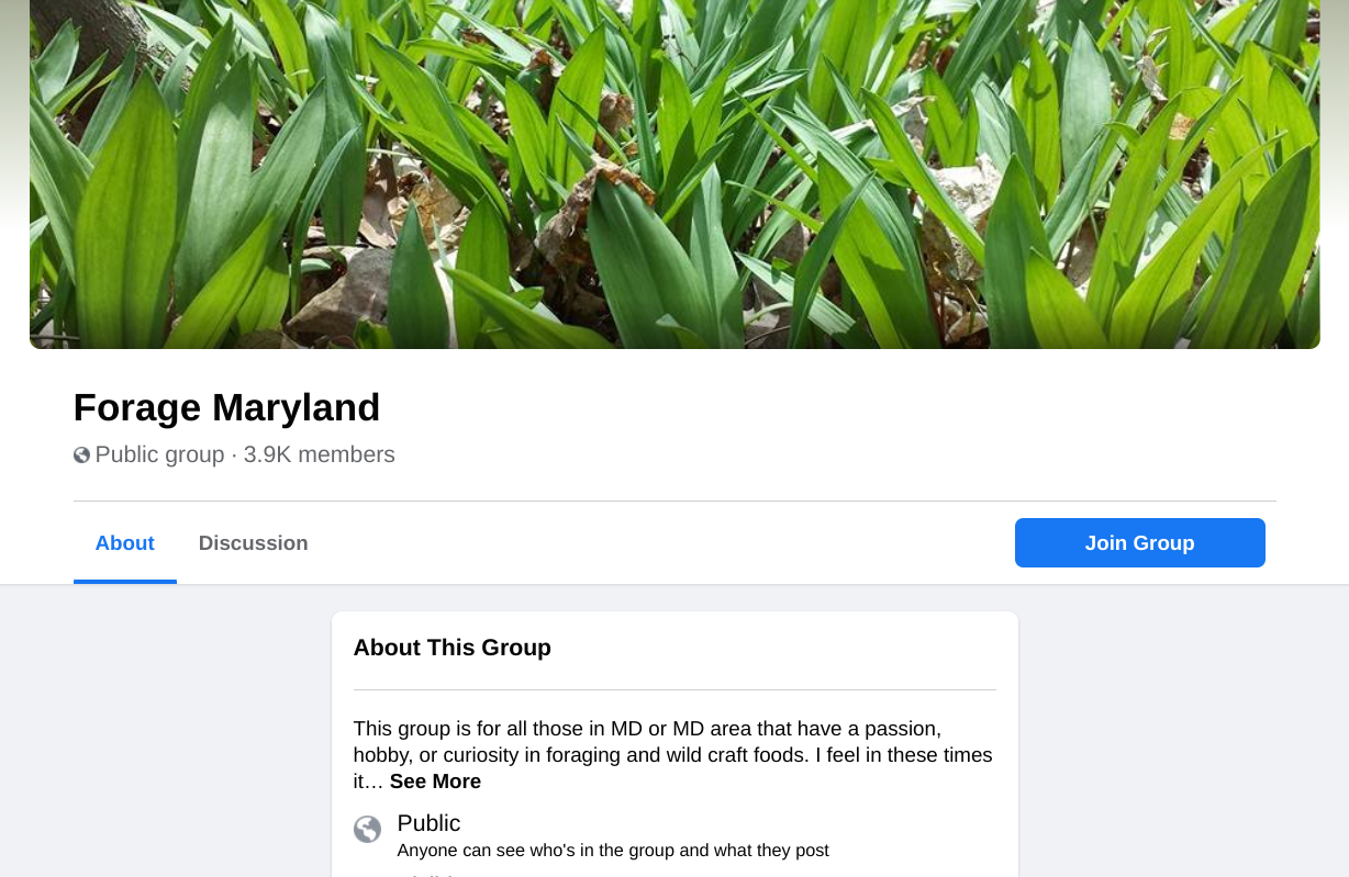 This Facebook group is composed of Marylanders who are interested in learning about and disseminating information on foraged and found foodstuffs. Frequent post topics include plant and fungi identification, sharing hotspots for rare and popular finds, and brainstorming ways in which foraged foodstuffs can be used. The page consists of community members who range in experience and their suggestions should always be verified before trusting them, particularly in regards to mushroom identification.